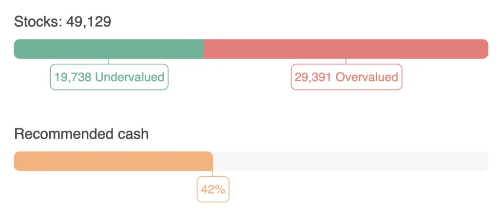 Das Markt Analyse Tool bewertet alle Aktien in der Datenbank und leitet daraus den empfohlenen Cashanteil in Ihrem Portfolio ab.